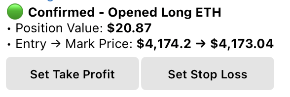 * **Trade:** The asset and direction (e.g., Long ETH or Short ETH).